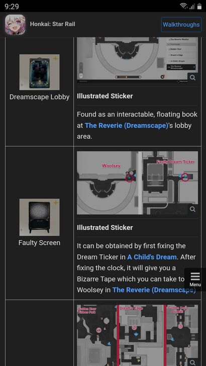 Error in walkthrough. It says A Child's Dream but the map where broken clock is at The Reverie DS