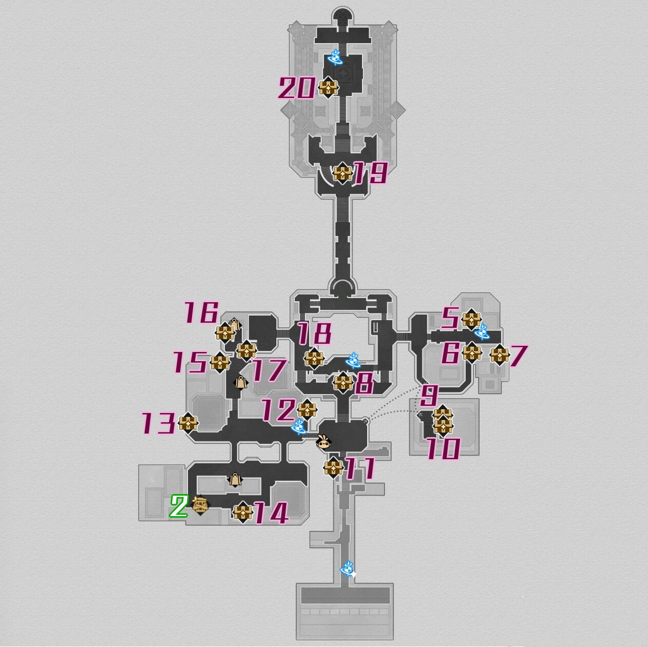 Once the northern part of F2 is unlocked, you can find Chest 19 in the central area before A Child's Moonlight Space Anchor. After going up the circular stairs, go into the rounded area with the metal railing to find the chest.