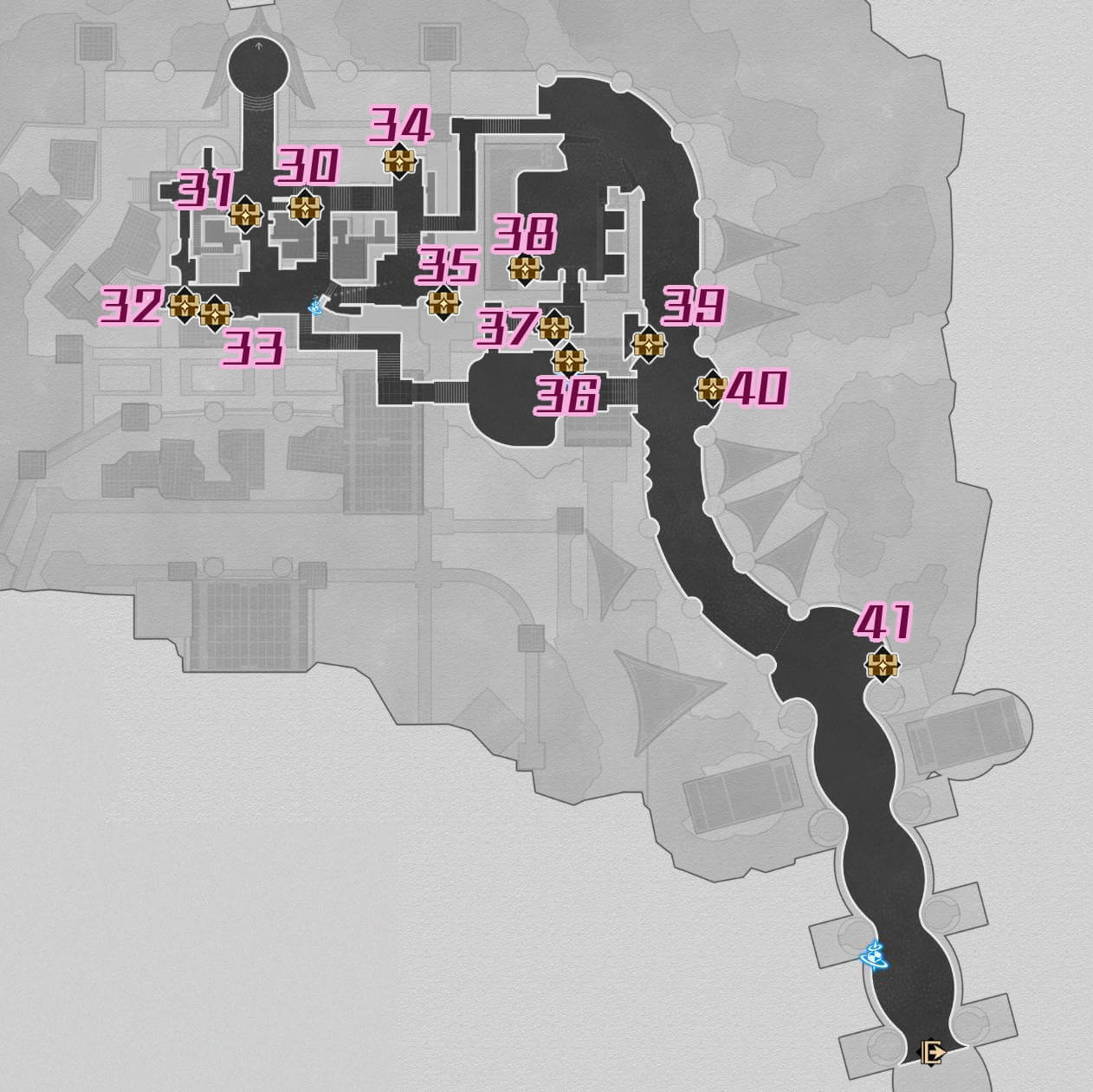 From Chest 32, walk a few steps east and you'll find Chest 33 hidden behind two destructible shields.