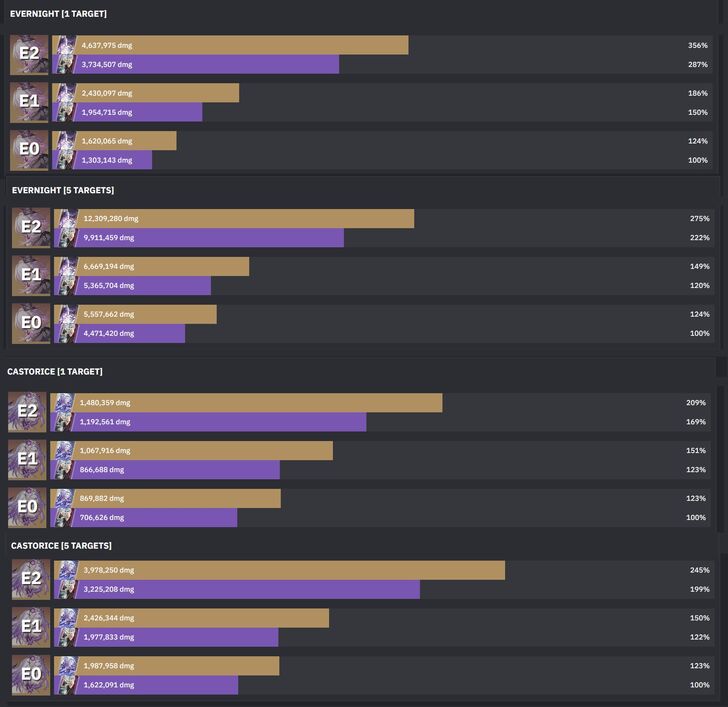 WRONG, she only needs 3 Remembrance, Her, RMC and Cyrene. At E2S1 she's the strongest char in the GAME by massive diff, her calcs overshadow anything we've seen so FAR, she is so much better than Castorice and Phainon, her E0 is basically an E2S1 Castorice...