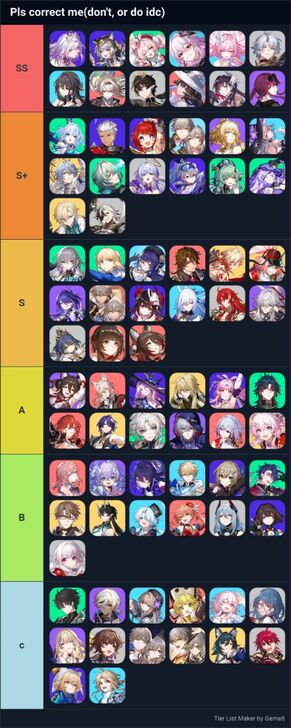 Wished to take this vote as a joke, but turns out I had serious opinions on the current tier list and the overall tier list of the community and apparently they have rules, so I will just stick to them and give my opinion on the characters, I played since 1.0 as a F2P so this list is all E0, organized(DPS, Support (Healer, shielder and both buffers and debuffers), Sub-DPS. Best to worst).