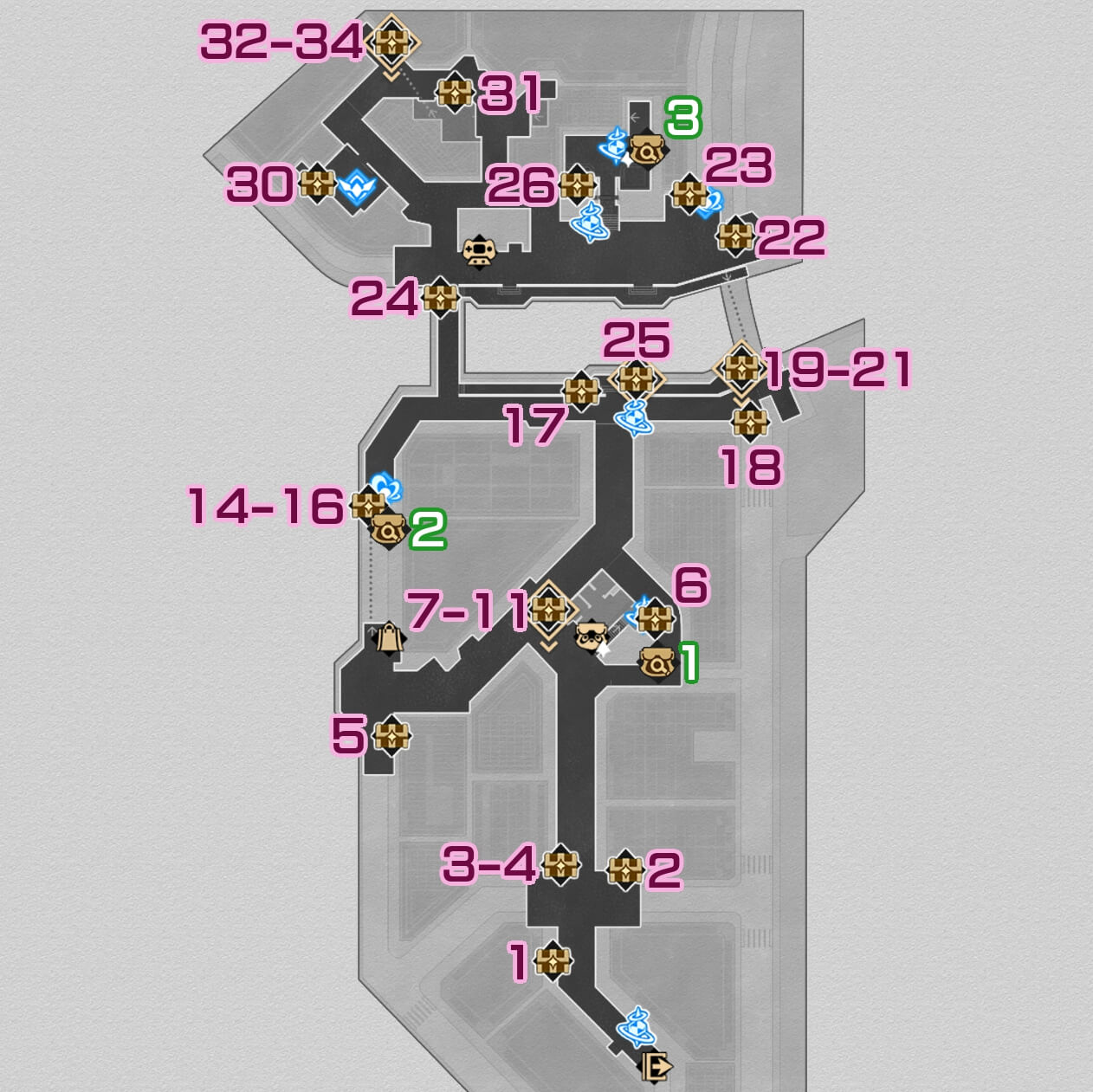 From Chest 33, continue progressing through the stage until you reach Level 3. Chest 34 will be right in front of the exit pipe that leads to F2.