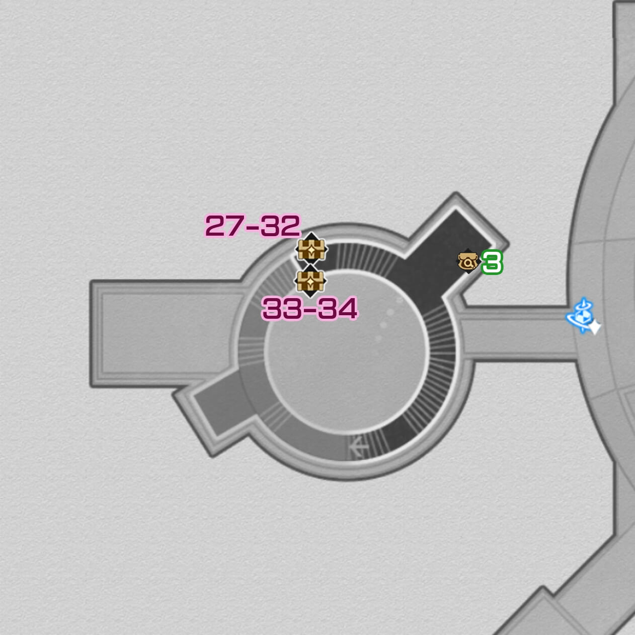 Enter the Interplanar Jump Difficulty III puzzle in the Grand Treasury and proceed through all the levels until you reach the exit. Upon exiting, you will be near Chests 27-32.