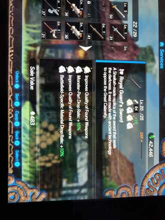 1. Change the language to english. That'll help. 2. If you go to "sell" and go to link, look at that weapon. If it has a star icon on it, then that means it has the better re-sell value perk, increasing it's sell.price and giving you more rupees from it.