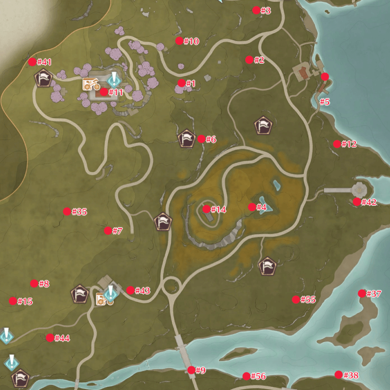 There are a total of 67 Whimstars in Florawish. All their locations are noted below: