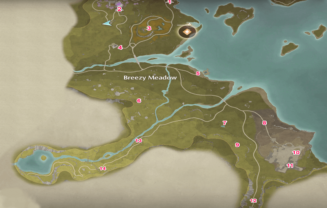 There are a total of 14 Warp Spires in Breezy Meadow. All their locations are noted below: