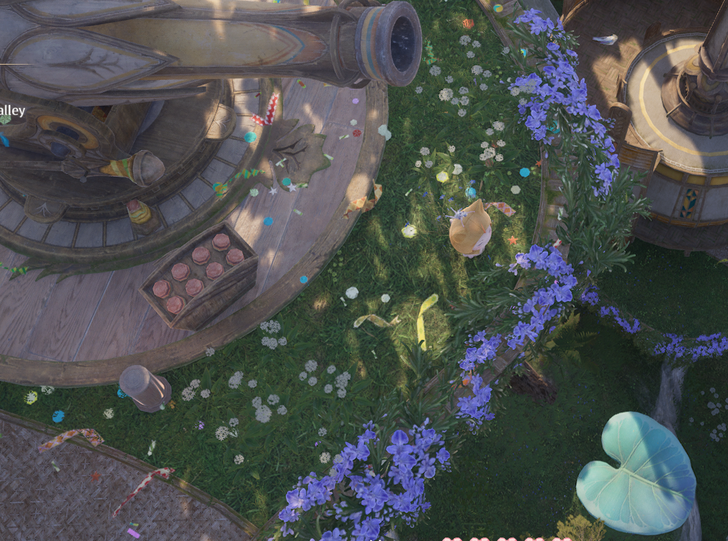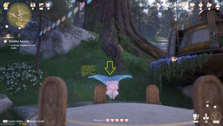 There's a tree north of the Wish Celebration Center tower, that tree has a platform and you can see a cannon on it. At the base of the tree on the southern end is a bounce leaf. If you shrink and use the bounce leaf, you can just make it onto the platform, and use the cannon to launch yourself onto the tower.