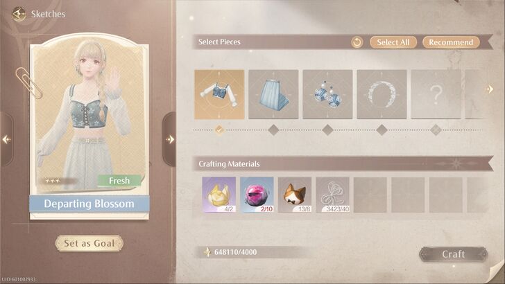 2 Dawn Fluffs are required for the top in Departing Blossom, Wind of Thoughts
