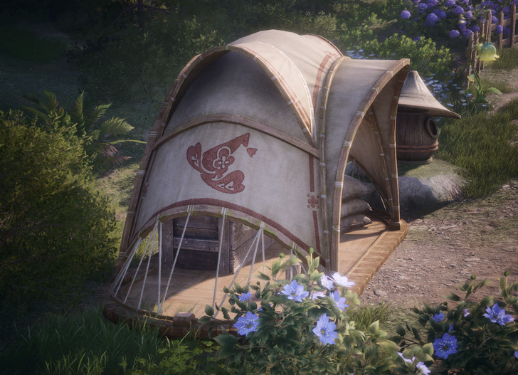 On the tent to the left of Timis' Beauty Lab when looking at it from Aventura's location, you can see the actual logo. It's a "witch" hat that includes two hearts and a four-petaled flower.