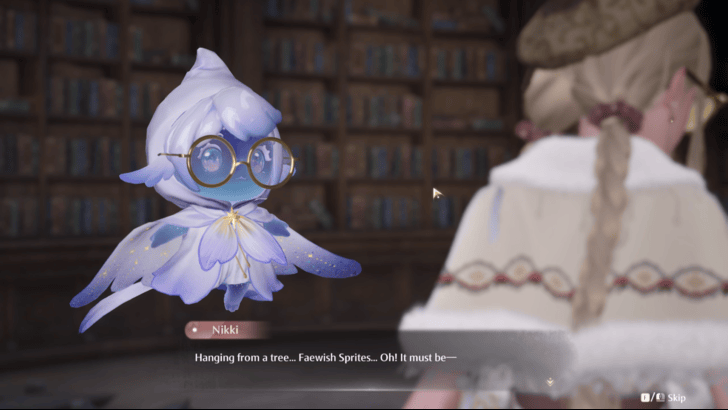Upon reaching the low corridor of the Dream Warehouse, approach the Faewish Sprite named Arubida, who appears lost in thought and unresponsive to Nikki's questions.