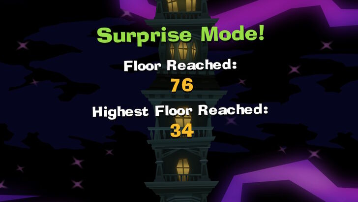 The following records listed above are the best recorded times for Surprise Mode runs for specific difficulties and number of floors, along with the highest floor record for an Endless run.