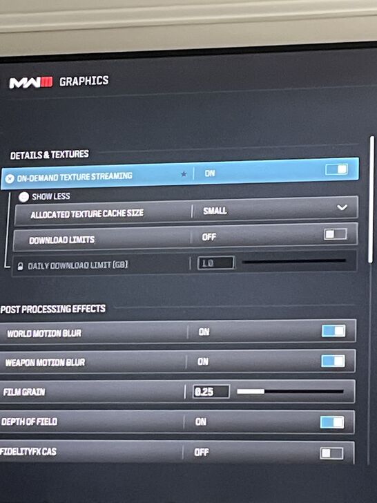 The best fix for the Dev error 5433 in MW3 requires you to adjust your On-Demand Texture Streaming settings. Launch MW3. Navigate to Game Settings. Select the Graphics tab. Look for the option labeled “On-Demand Texture Streaming.” Change the Allocated Texture Cache size to “Small.” Dev error 5433 should disappear
