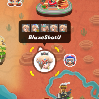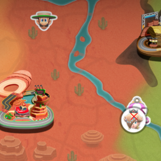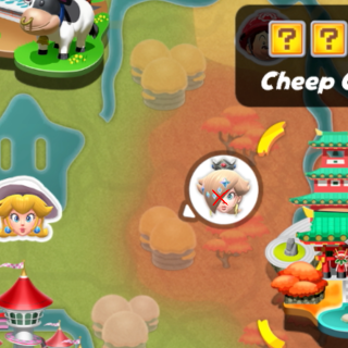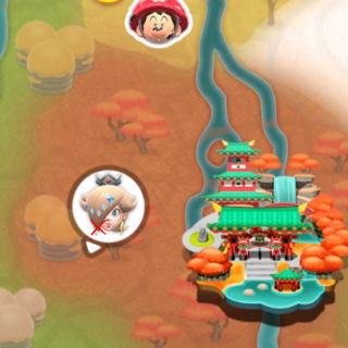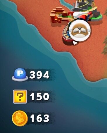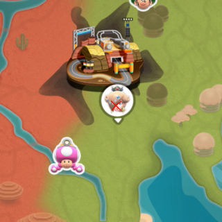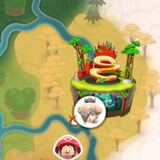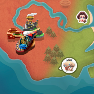 Peach medallion next to the track on a ledge. Need to reach higher ground to get it or truck with glider. I got it reaching higher ground then dropping to it.