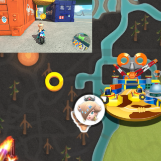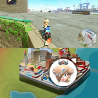 Here's another one located to the east of N64 Wario Stadium and ride up this crane at the right side of the bridge.
