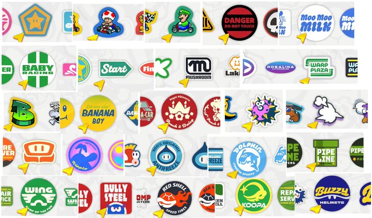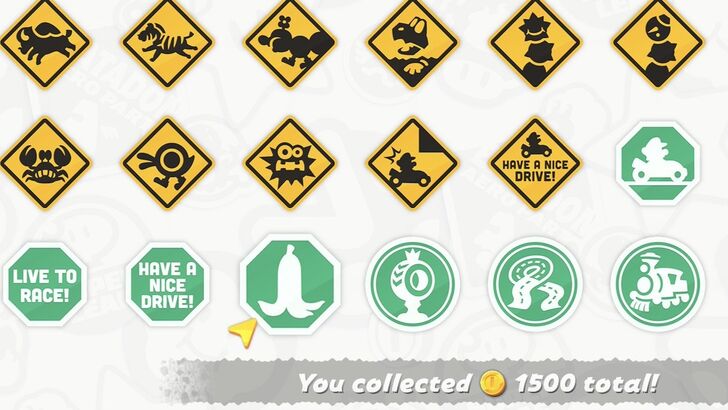 between sticker 53 and 54 should be a yellow caution sign with toad holding a shovel. "you drove 80km total!"
