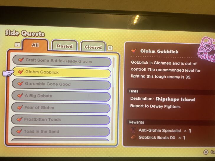 i’ve defeated glohm gobblick, but didn’t get the plug, i did get the boots? i’ve defeated the enemy at level 28