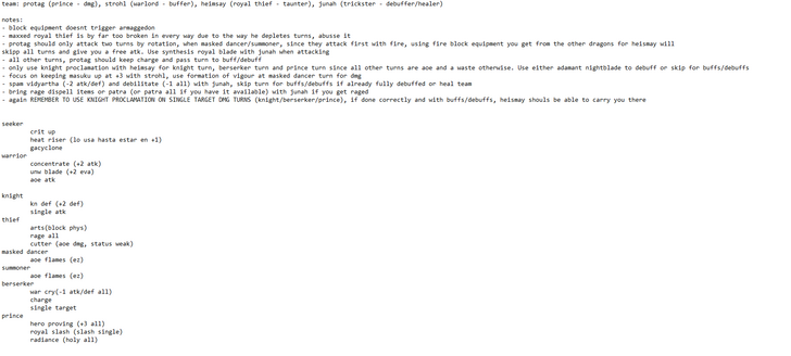 Used Heismay ninja dodger ring knight proclamation strategy + prince + royal warrior and destroyer. Basilio did most of the damage with wanton destruction while ninja was dodging most attacks.