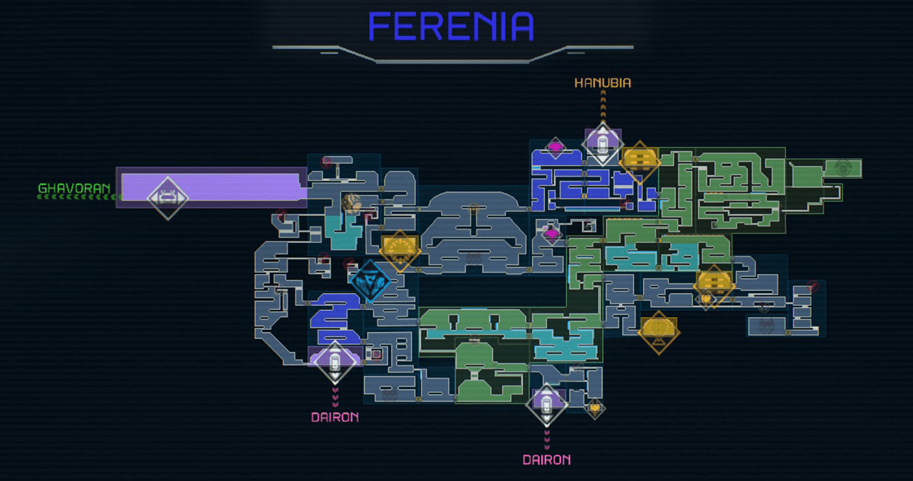 This is a 100% items guide to Ferenia, one of the areas found in planet ZDR in Metroid Dread for the Nintendo Switch. Read on to learn about all the enemies, bosses, and upgrades found in Ferenia and find out how to navigate the Ferenia map in order to locate all the stations, teleportals, elevators, missile tanks, and energy tanks!
