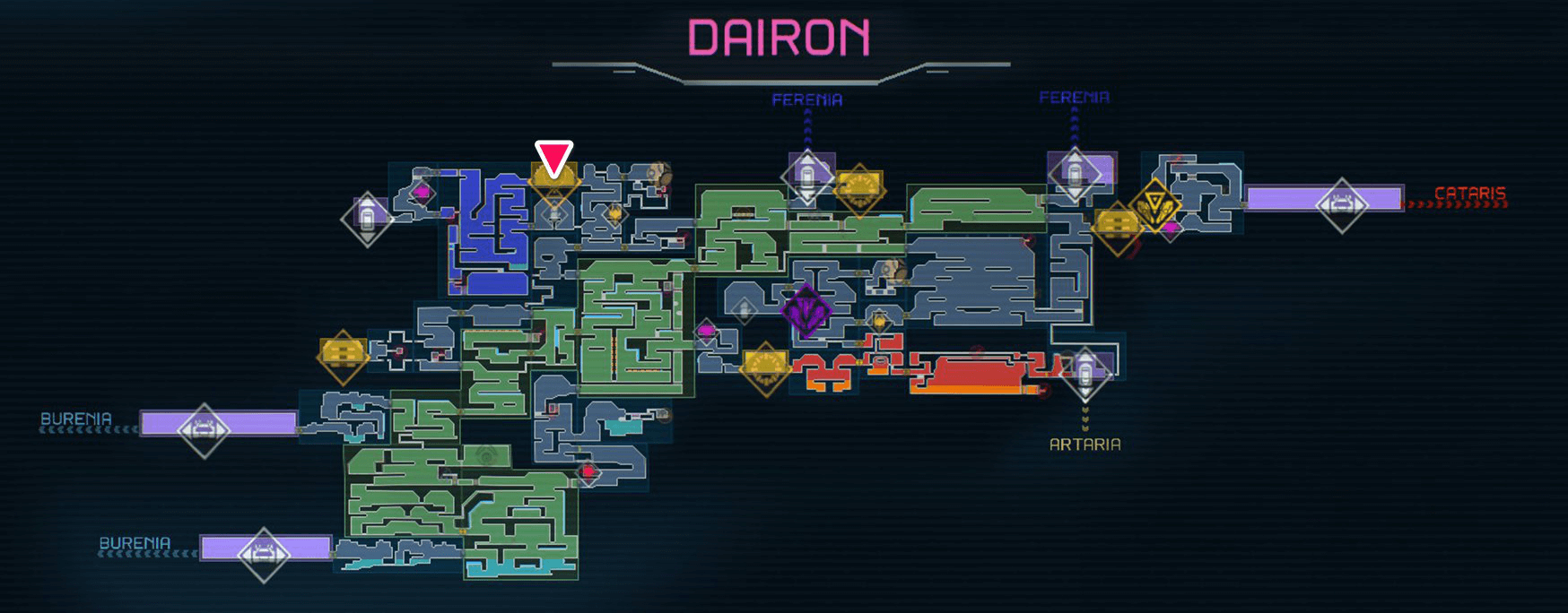The Map Station of Dairon is located above the second generator room. Though you can access the Map Station before activating the second generator, you must first restore power to that section of Dairon to download the map data.