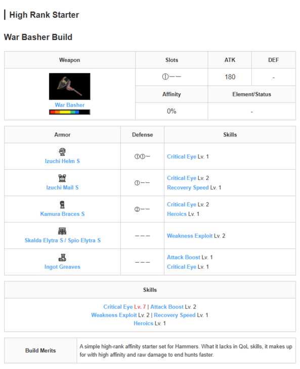 please fix the calculation on high rank hammer builds for war basher build i think the skills for critical eye only got lvl6 not lvl7