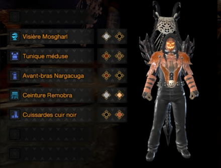 Pumpkin hunter : Head : 330,24,100 / 0,0,0 Chest : 0,0,80 / 24,55,35 Arm : 0,20,60 / 0,0,0 Waist : 0,0,0 / 26,46,100 Leg : 0,0,5 / 0,0,80