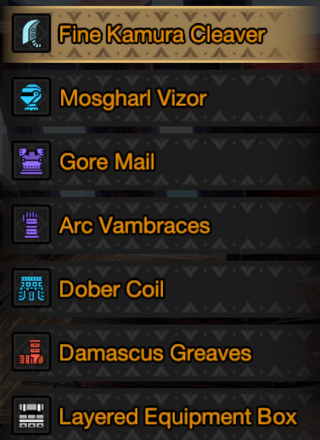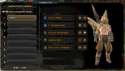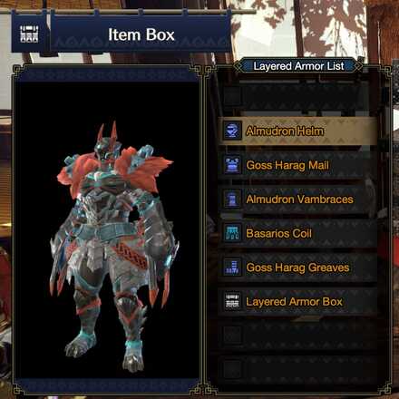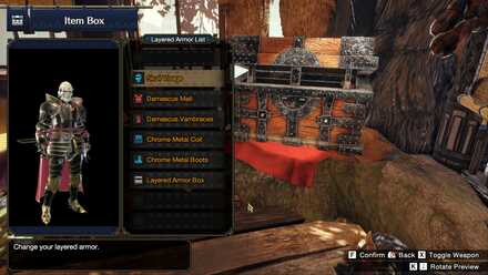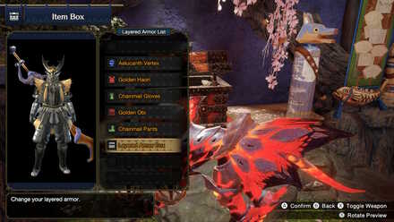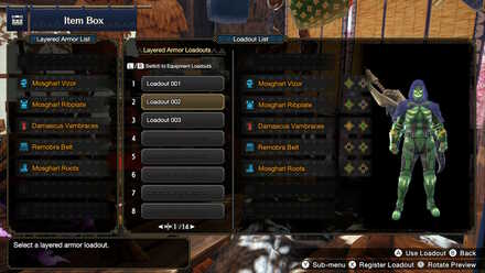 To access Layered Armor loadout, go to your Item Box while in Kamura, the Gathering Hub, or in Elgado, navigate to Layered Armor Settings and choose Layered Armor Loadout.
