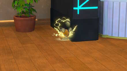 just throw apples to guide Dedenna towards the TV.