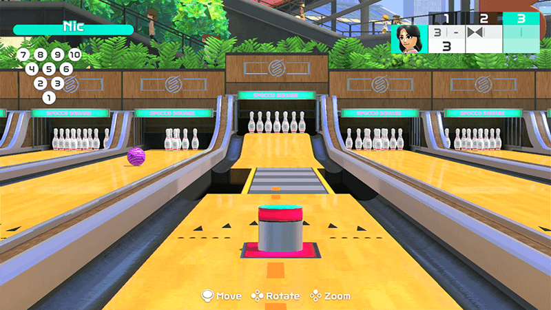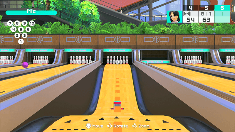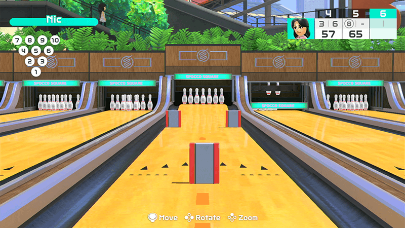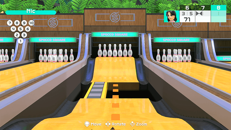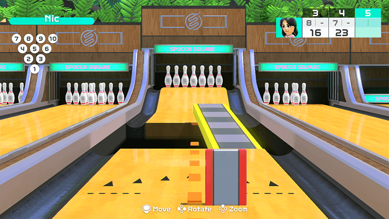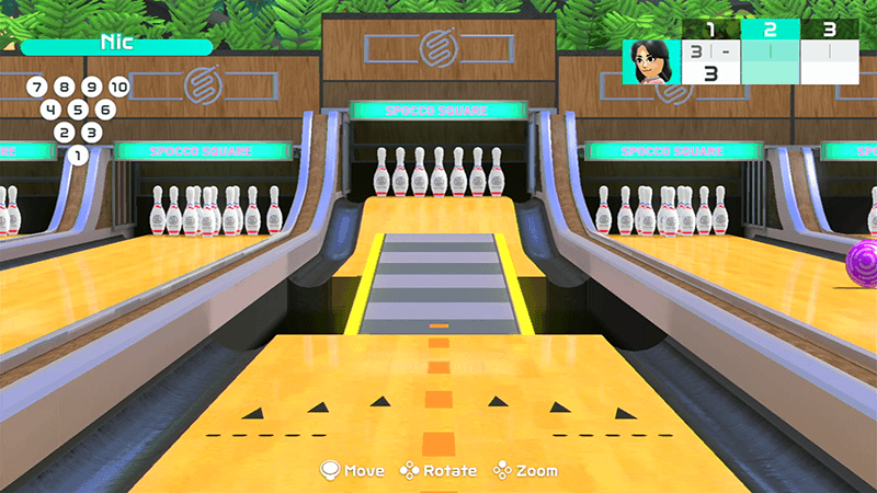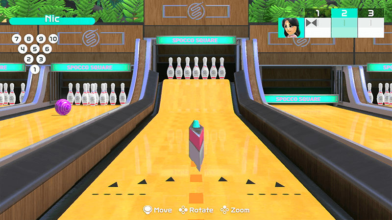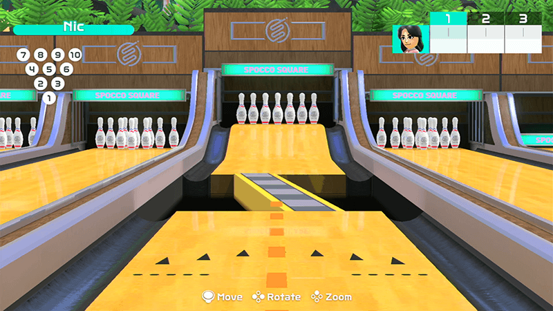 When encountering these lanes, you can adjust your position using the thumbstick or rotate using the Y Button and the A Button before throwing the bowling ball to avoid hitting the obstacles on the lane.