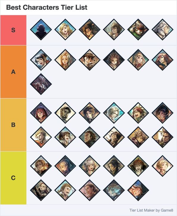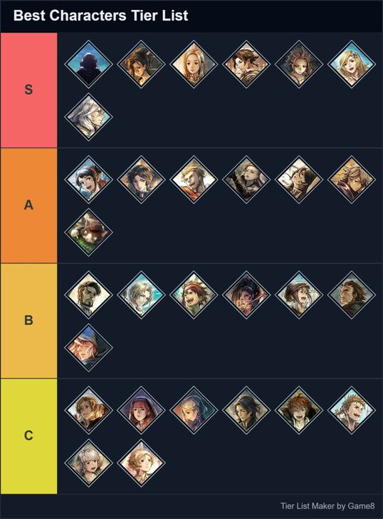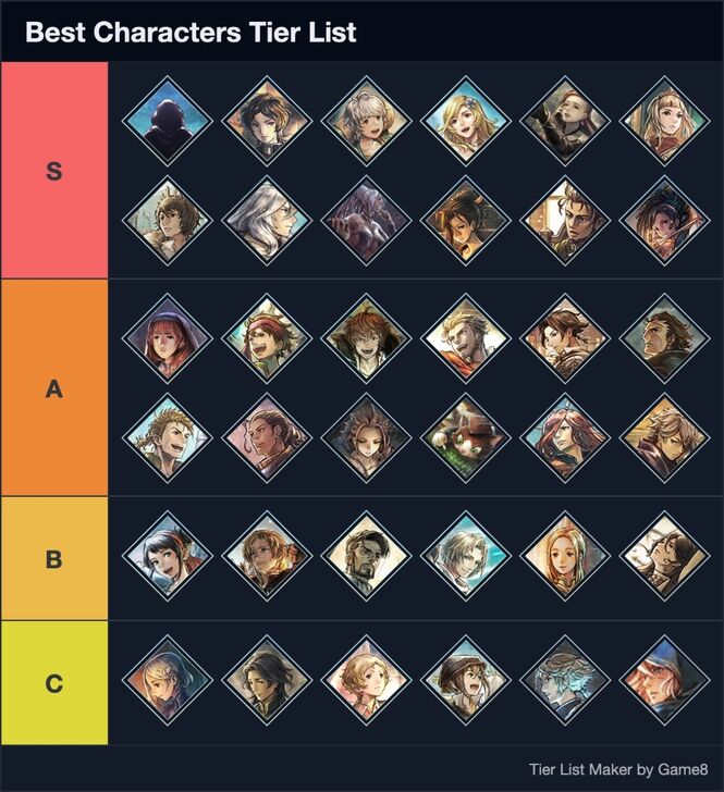 >>>4 By end game (meaning before defeating both the true ending and also the final secret boss), the strength of a potential party member is dependent on the unique utility and "fit" that character brings to a larger team play roles. Carinda and Delitia both bring fairly unique skill sets, passives and ultimates that largely cannot be effectively replicated. Looking at the list, I recognize now too that Phenn, Alfyn, and (maybe) Primrose should also be S-teir and Reime is probably not.