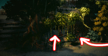 4 Once you're at the Northern Wellgrove Trail, take the path heading north until you find a tree with a hidden cave near it.