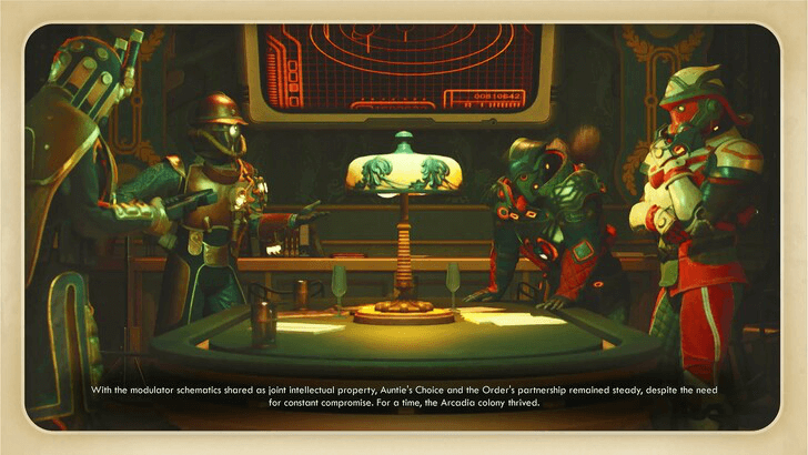 At the end of A Complication with the Computronic Cerebrum, siding with only one faction is an option. In the ending slides, Auntie’s Choice turns Arcadia into one of the most profitable colonies in the galaxy, while The Order rebuilds it into a safe haven for scientific research. The faction you do not choose will mark you as "Kill on Sight" and remain permanently hostile for the rest of the game.