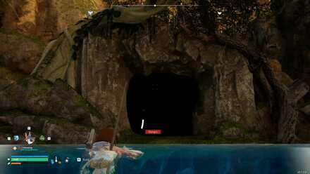 Directly south of the forgotten island church ruins in the water hole with the skill fruit tree there is a dungeon