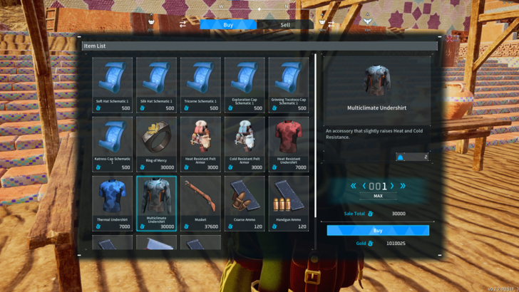 Multiclimate Undershirt with Lv1 Heat/Cold Resistance can be bought from Wandering Merchants (Green outfit) such as the one at Duneshelter.