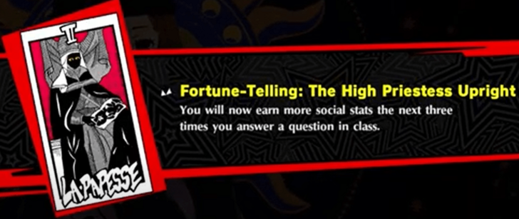 The High Priestess Upright You will now earn more social stats the next three times you answer a question in class.
