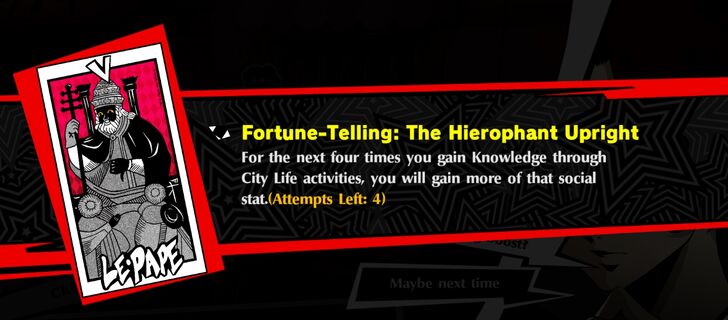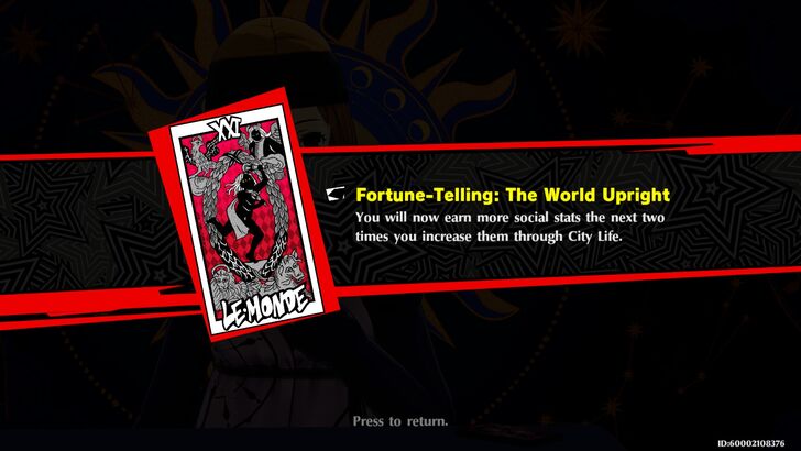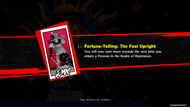 The Fool Upright: You will now earn more rewards the next time you obtain a Persona in the Realm of Repression
