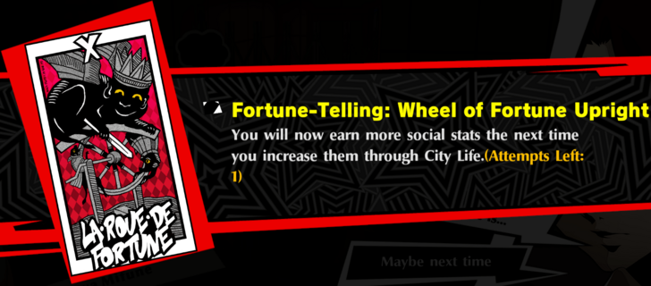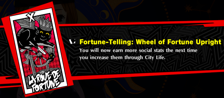 Wheel of Fortune Upright You will now earn more social stats the next time you increase them through City Life.