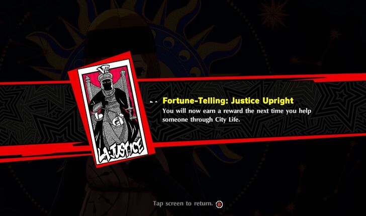 Fortune-Telling: Justice Upright You will now earn a reward the next time you help someone through City Life.
