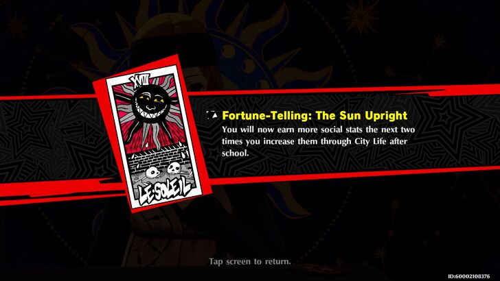 Sun upright - You will earn more social stats the next two times you increase them through after school events