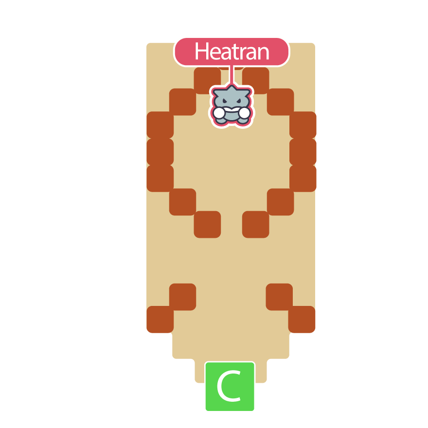| 14 | Travel back here, and enter the location where you found the Magma Stone. Inside this area, you'll encounter Legendary Pokemon Heatran. |