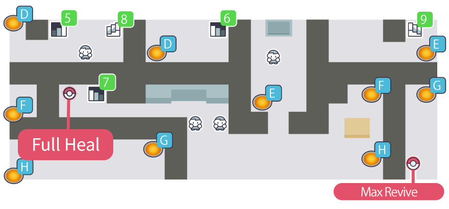 2nd floor map. To the very left of stair #7 hidden item Full Heal.