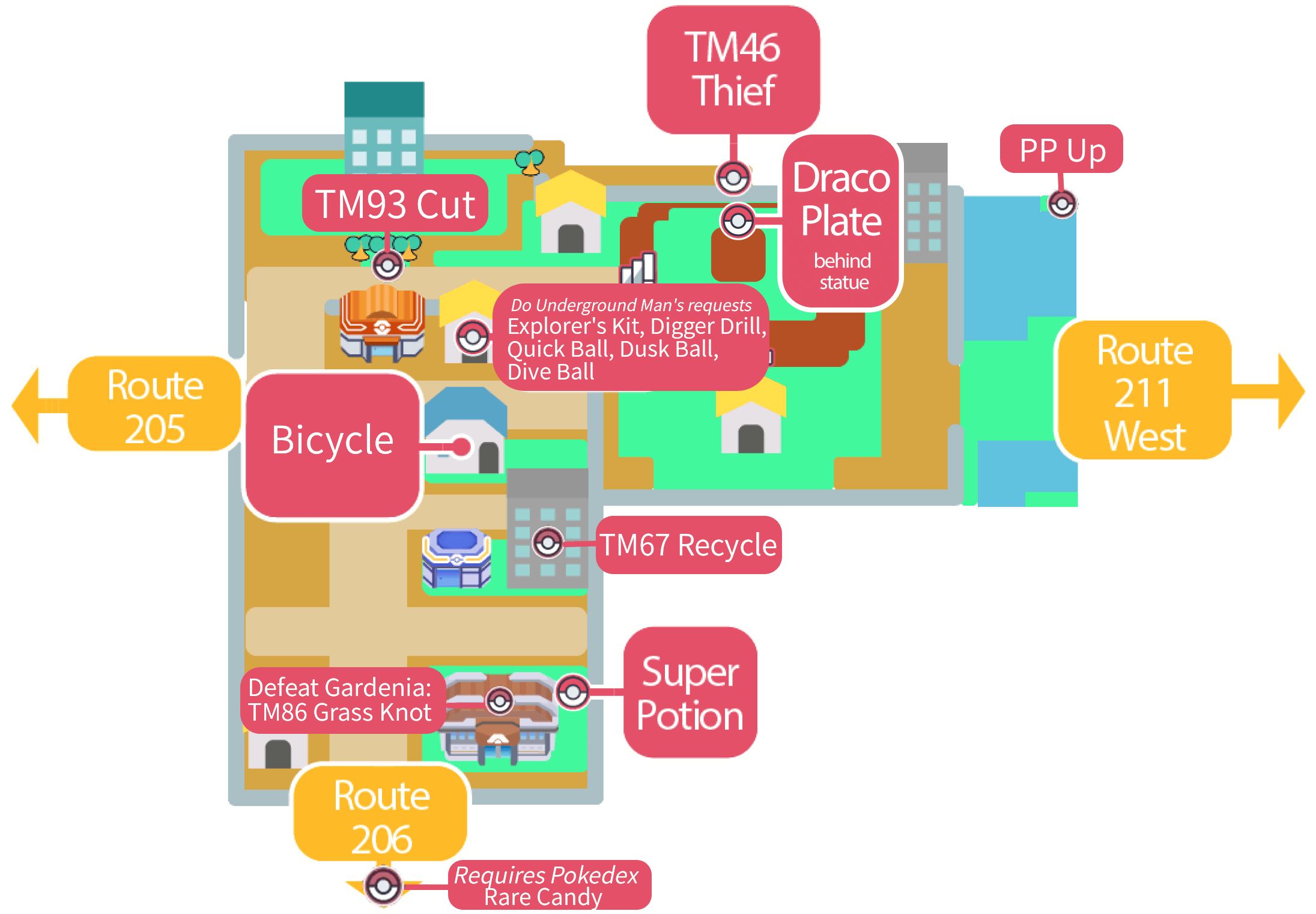 ・Twinleaf Town ・Jubilife City ・Canalave City ・Routes connected to above |