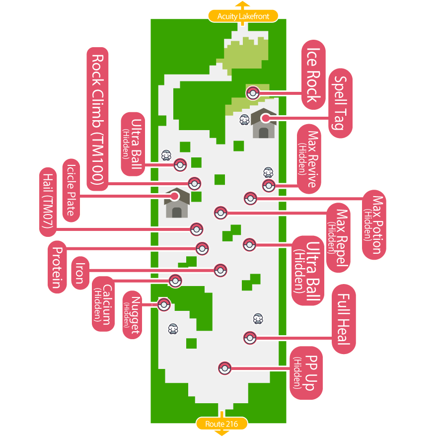 ・A: Deep Sea Tooth ・B: Bug Buzz (TM62) ・C: Focus Punch (TM01) ・D: Toxic (TM06) ・E: X-Scissor (TM81) ・F: PP Up ・G: Rare Candy |