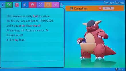 Saw Kangaskhan through binoculars in Great Marsh post National Dex. Encountered one so far but it fled.