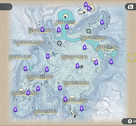 | Under a cliff in the middle of Icepeak Arena and Avalugg's Legacy. | ||