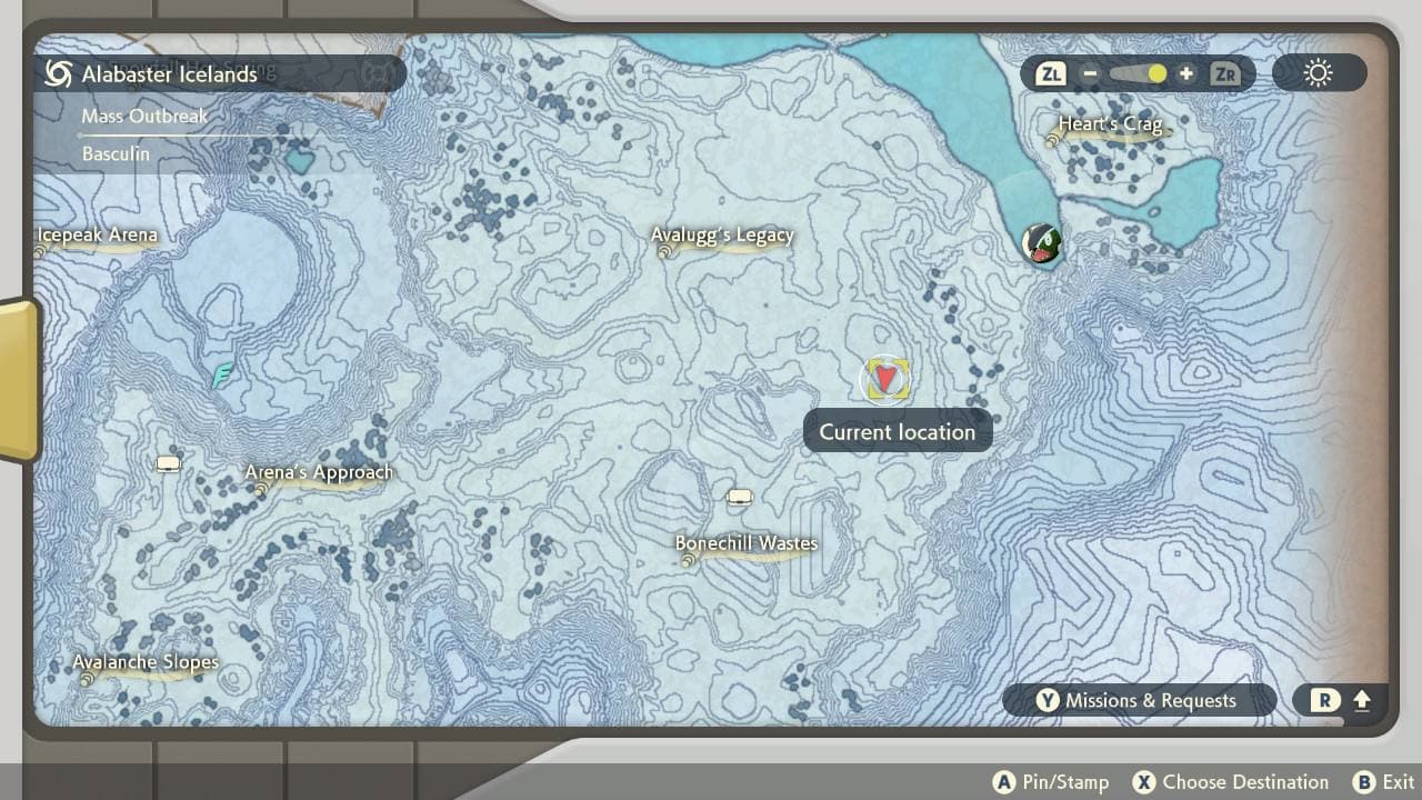 Head to the southeastern side of Avalugg's Legacy, taking care to avoid other agressive Pokemon. The Alpha Abomasnow will be on a flat area near the large ice formations.
