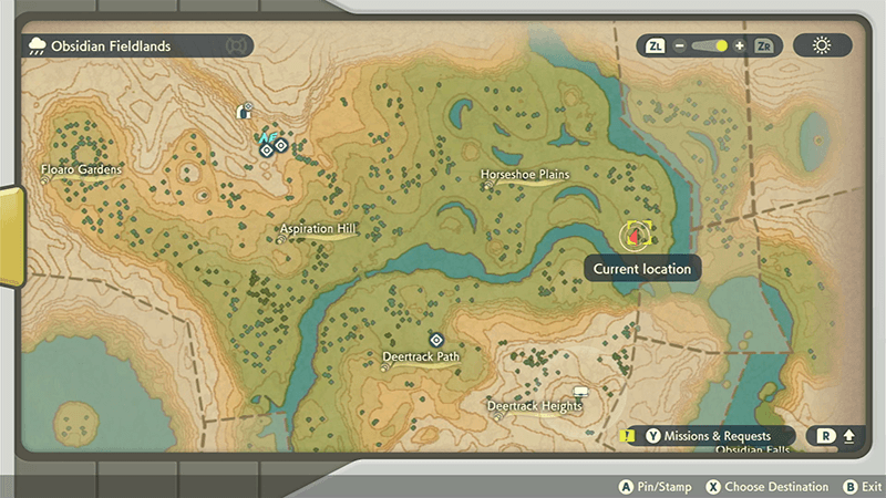 | 1 | ![]() At Obsidian Fieldlands, head to the southwestern-most point of Sandgem Flats. Mime Jr. can be found in the area marked on the above image. |