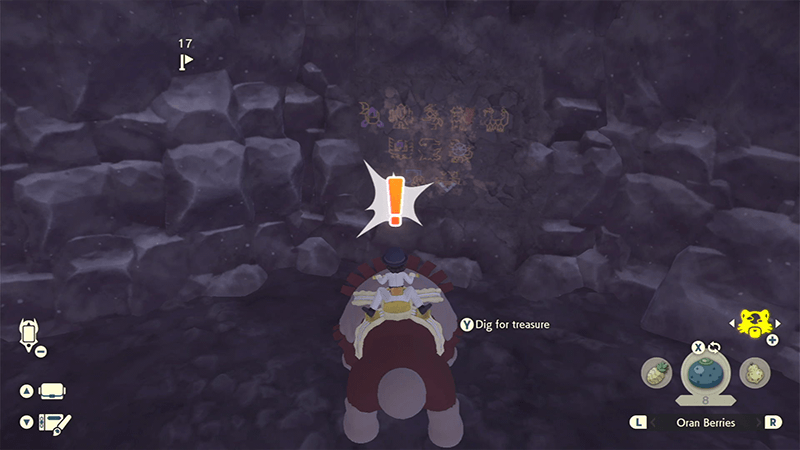 | 2 | ![]() Head inside the tunnel on the area and face the wall with markings. Use Ursaluna to find the Old Verse 6 and press the Y Button once an exclamation point (!) appears above the Pokemon's head. You may need to dig the spot two times in case a different item appears instead of the Old Verse 6. |