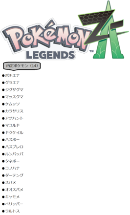 == 『Pokémon LEGENDS Z-A』【ポケモン】 == 内定ポケモン(14)
