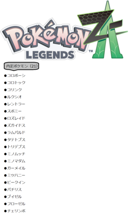 == 『Pokémon LEGENDS Z-A』【ポケモン】 == 内定ポケモン(21)