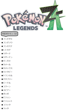 == 『Pokémon LEGENDS Z-A』【ポケモン】 == 内定ポケモン(4)